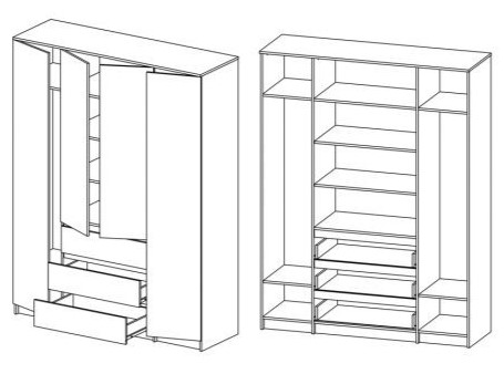 Навешивание шкафов, антресолей и полок в стоимость сборки не входит!